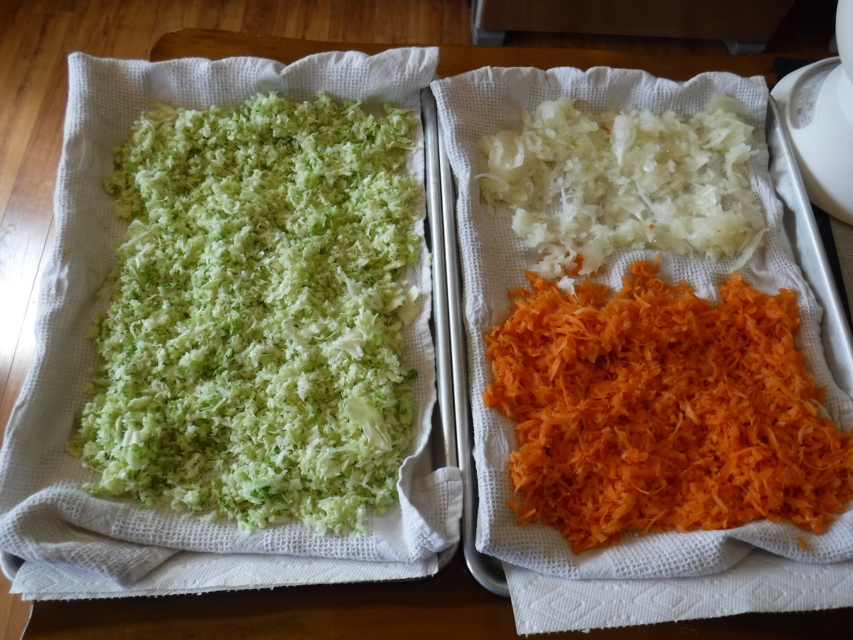 - Grate the carrots and set aside. Carrots take longer to cook than the cabbage and can be grated finer than the cabbage. Finely grate the onion and set aside.