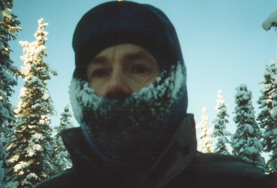 Dog mushing is a sport that requires strength and stamina and intense training to protect against the elements in a hostile environment. The Musher has to be in good shape, too! Here Dale and the team are on the outbound leg of an overnight training run on a portion of the trail used for the World Famous Iditarod Sled Dog Race, 1049 miles from Anchorage to Nome, Alaska. |